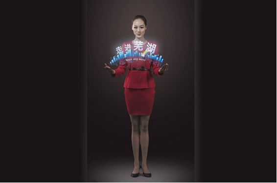 虚拟主持人,又称虚拟门迎、虚拟解说员,运用三维动画、人机互动红外感应处理、大屏幕显示、投影机背投等技术来实现,观众会看到一个竖立的大屏幕(大屏幕可以用等离子电视机或进口高分子成像材质高清全息透明成像膜)上有一位讲解员的静止影像,当观众走到屏幕前时,屏幕中的讲解员即可活动起来,开始为观众推荐介绍展厅的主题分布及特色展区,来访者亦可以通过立式触摸屏实现触控选择播放迎宾员不同的语音内容。该技术拥有较高的科技元素,可为展馆带来亮点,吸引游客眼球、操作简单。